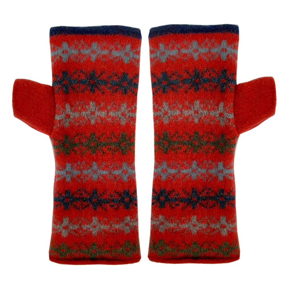 Fairisle snowflake fingerless gloves brick red