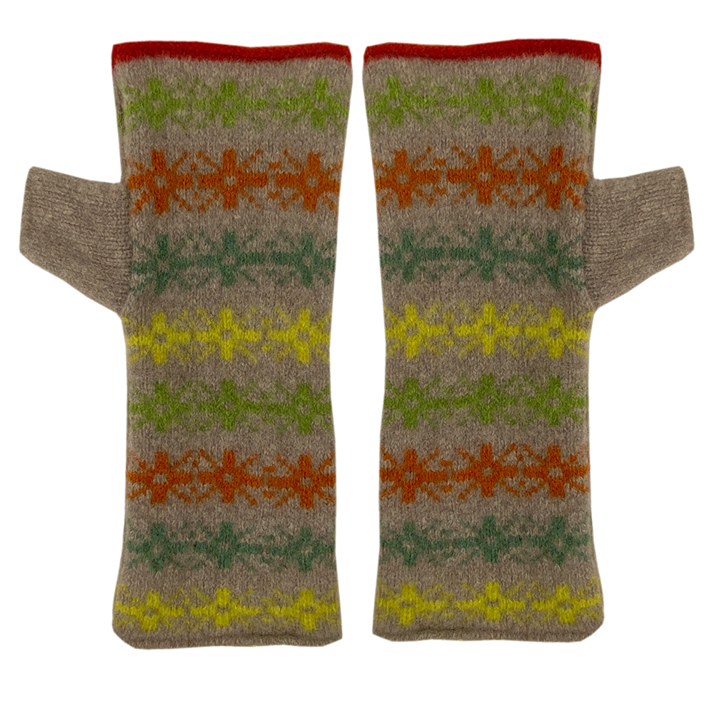 Fairisle snowflake fingerless gloves Oatmeal