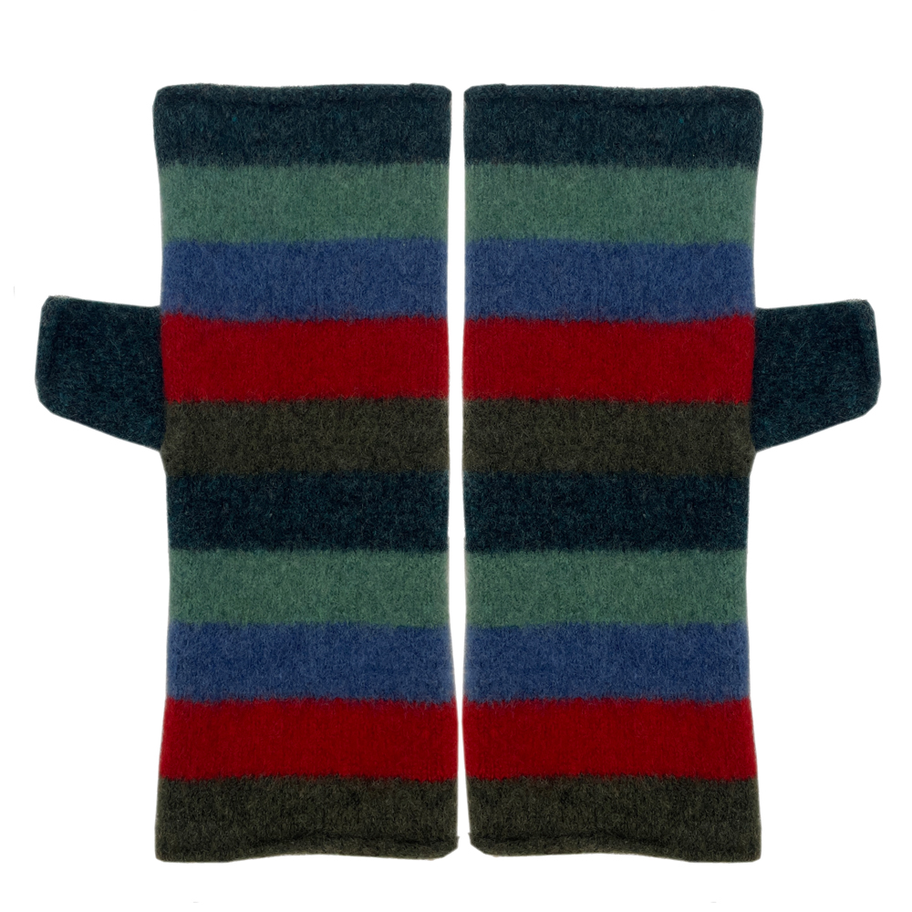 Simple, soft, durable, knitted and felted mitten-style fingerless gloves, with contrast colour trim.