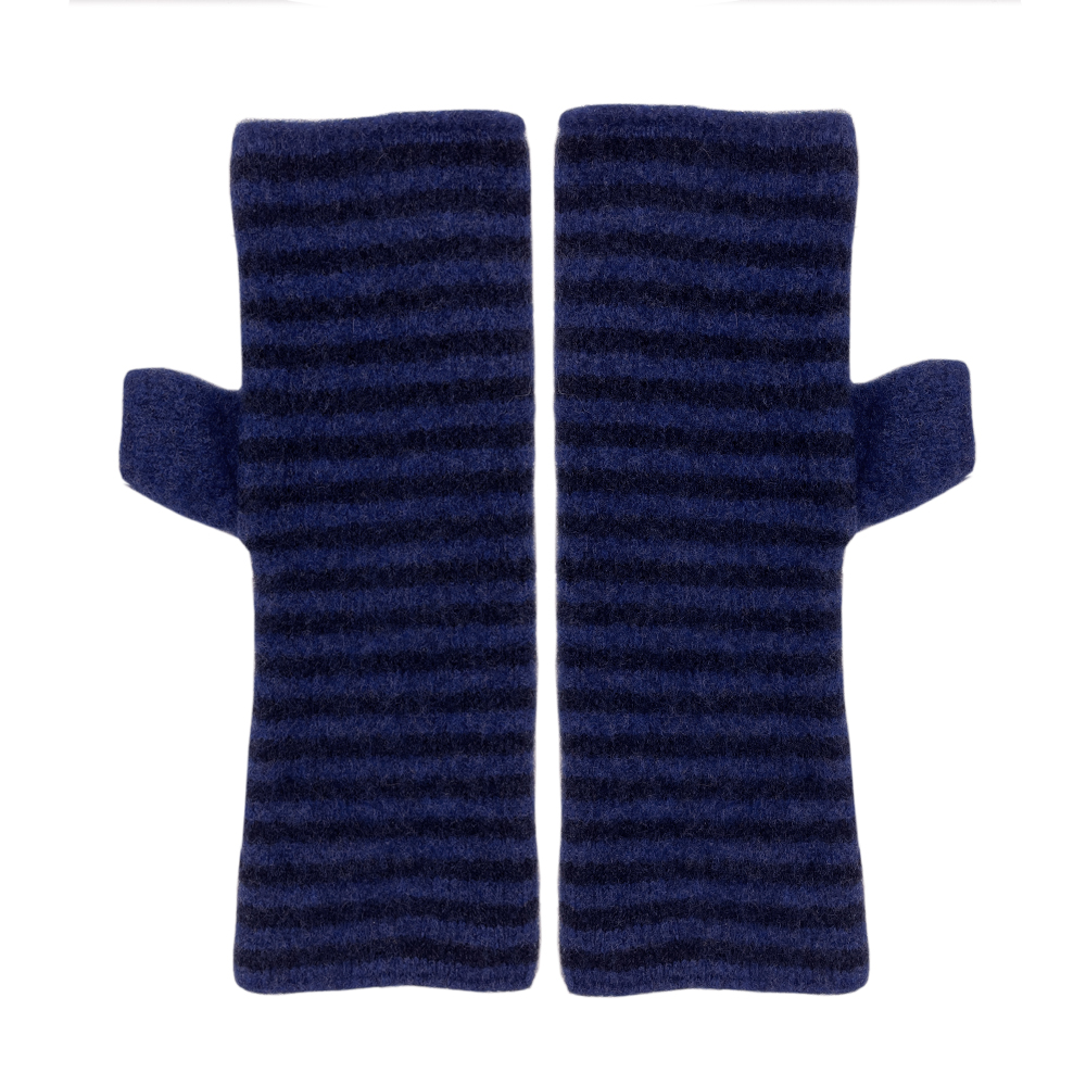 narrow striped two colour fingerless gloves- blues