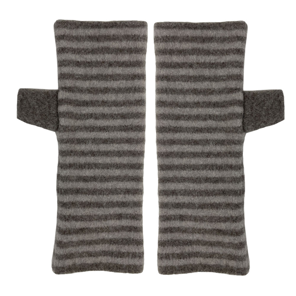 Simple, soft, durable, knitted and felted mitten-style fingerless gloves, with contrast colour trim.