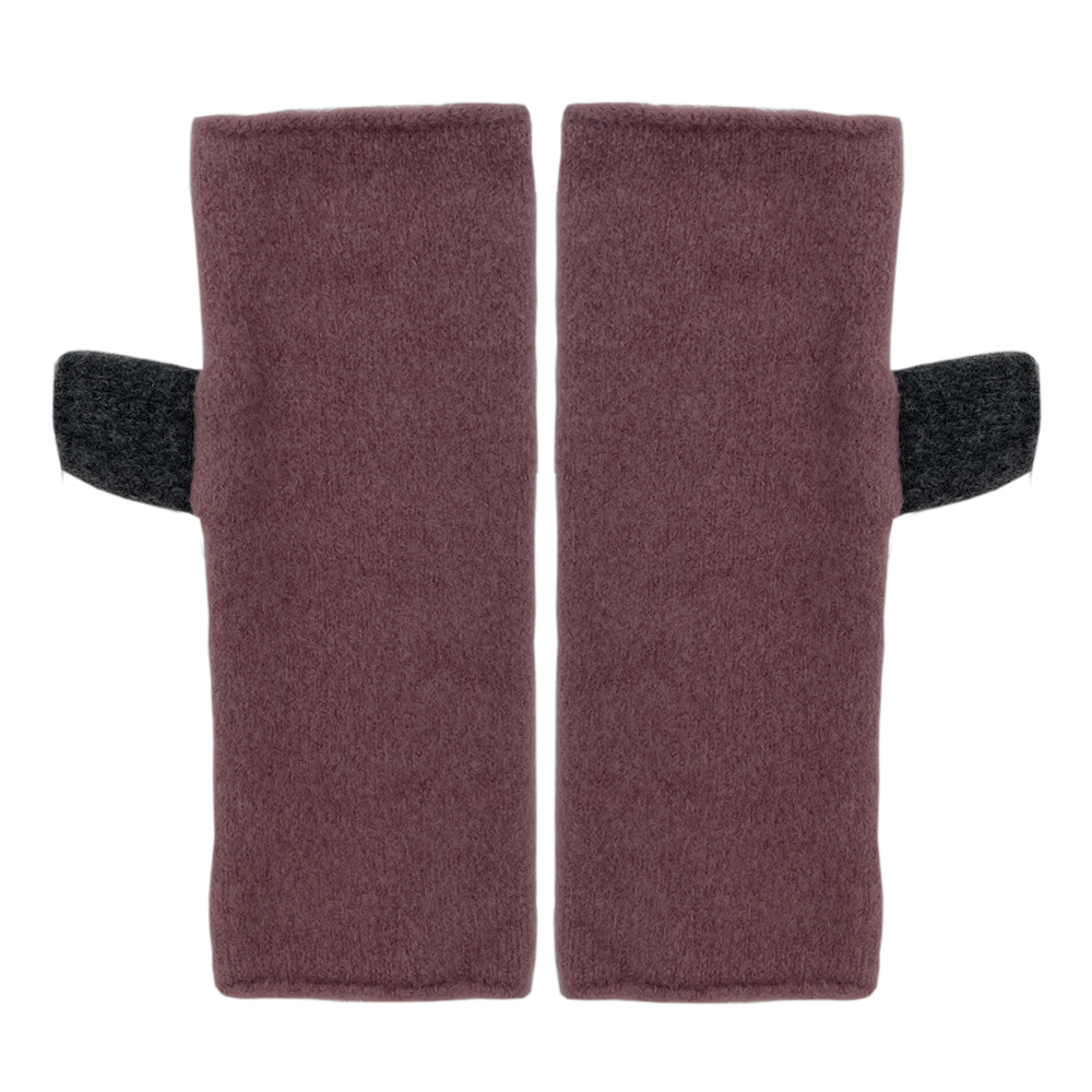 plain fingerless gloves with contrast colour thumb - dirty pink with grey thumb