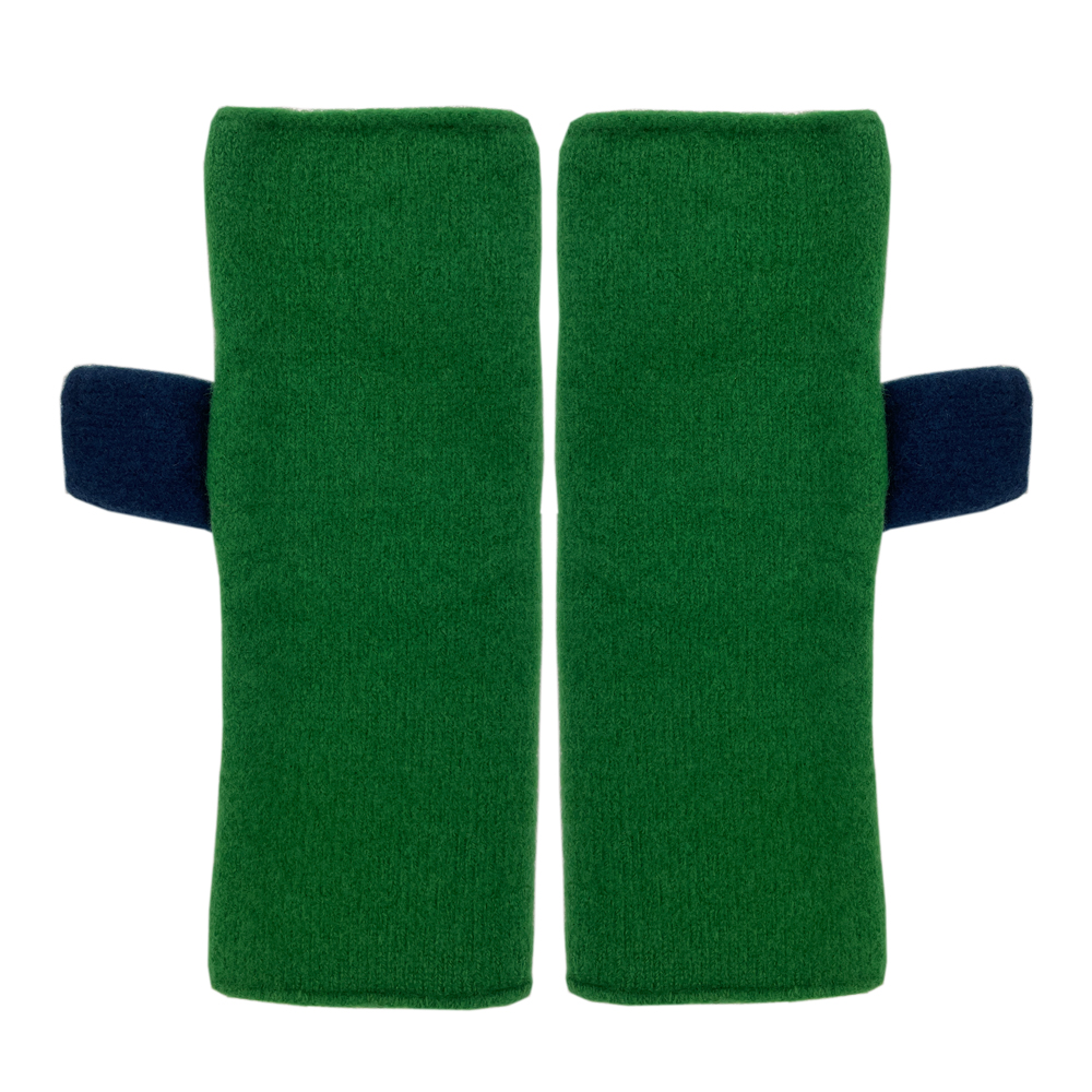 plain fingerless gloves with contrast colour thumb - grass green with navy thumb
