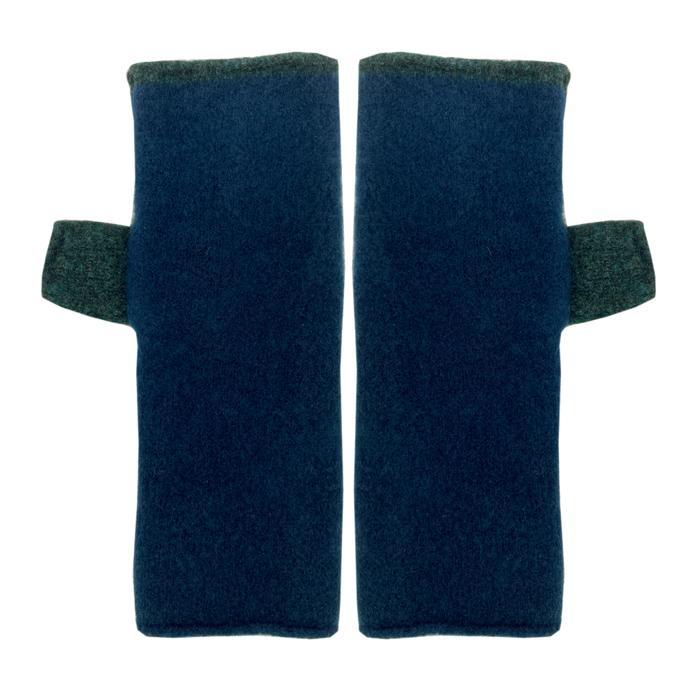 Simple, soft, durable, knitted and felted mitten-style fingerless gloves, with contrast colour thumb.