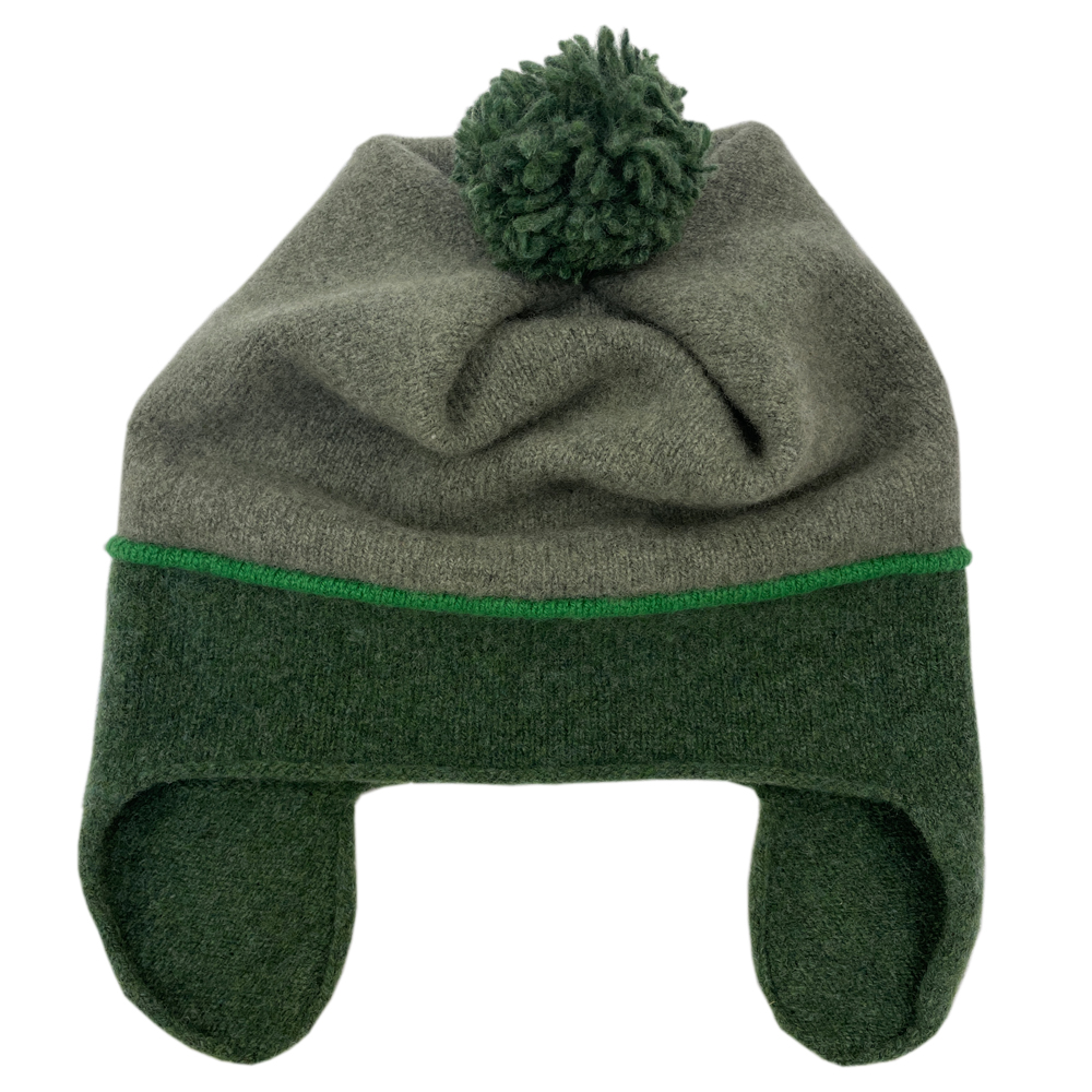 Earflap hat with pom pom - greens